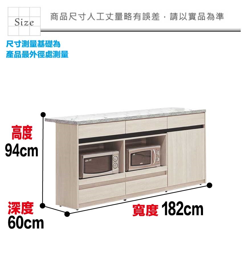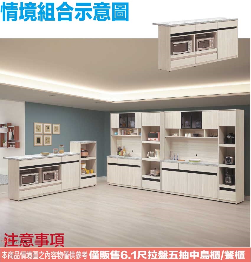 - ◆產品名稱:【綠家居】達斯6.1尺二門五抽拉盤中島桌櫃