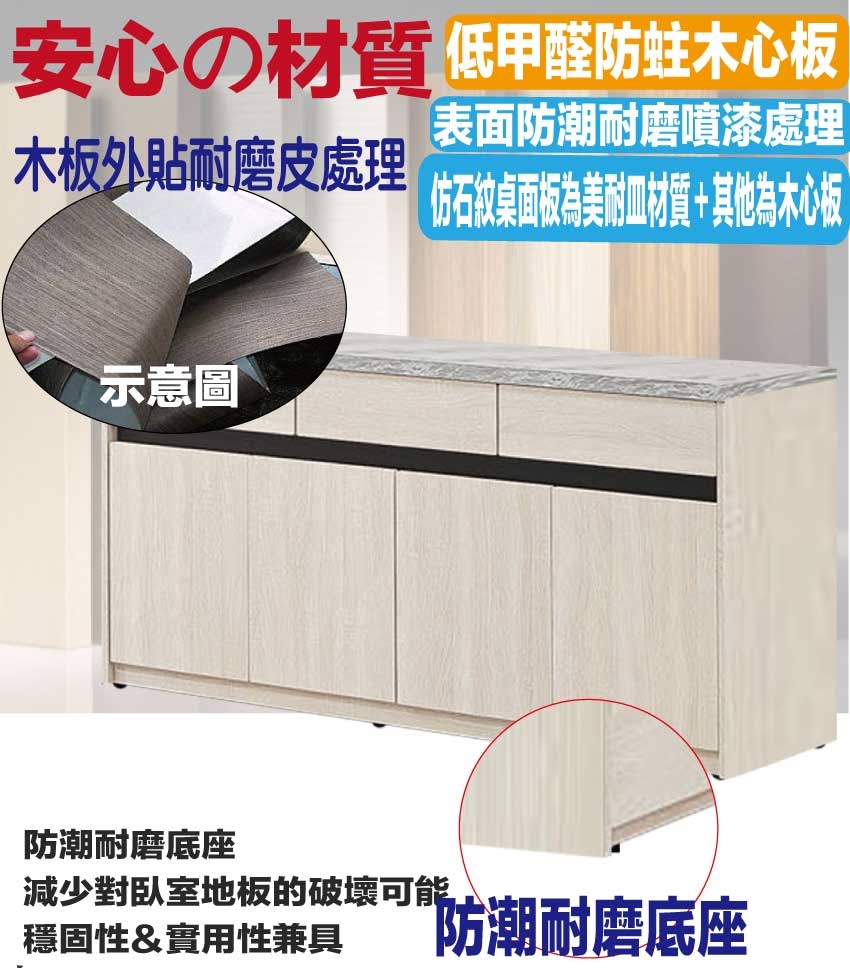 ★偏遠地區需額外加收運費,下標請先問與答詢問★ ★下訂前注意 由於商品流動較快,下訂前請先詢問是否有貨在下訂喔~★ 【綠家居】達斯5尺四門三抽低餐櫃 木紋雙色系+現代簡約風格+安心材質製造,使用放心+搭配居家更便利,整體採用防蛀木心板+防潮耐磨腳座+防夾手緩衝五金+五金滑軌結構+耐磨美耐皿仿大理石紋桌面板等材質製造搭配外層採用優莉坦耐磨全包式噴漆處理 ,採用開門櫃+三抽屜+內開放層格等收納空間設計,全由專人配送到家,專業安心服務,替你省下更多時間!