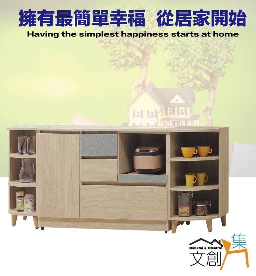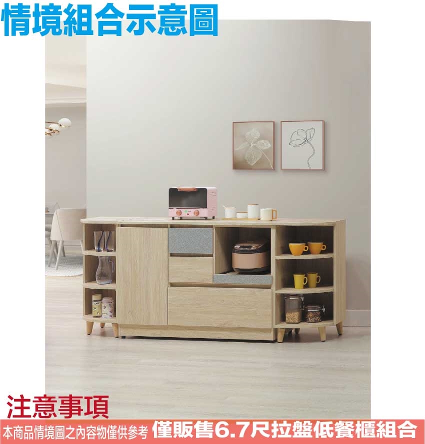 【綠家居】星空6.7尺開門三抽拉盤低餐櫃組合