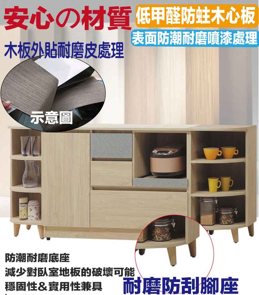 ★偏遠地區需額外加收運費,下標請先問與答詢問★ ★下訂前注意 由於商品流動較快,下訂前請先詢問是否有貨在下訂喔~★ 【綠家居】星空6.7尺開門三抽拉盤低餐櫃組合 木紋雙色系+現代簡約風格+安心材質製造,使用放心+搭配居家更便利,整體採用防蛀木心板+防刮耐磨腳座+五金滑軌結構等材質製造搭配外層採用優莉坦耐磨全包式噴漆處理 ,採用開門櫃+拉盤層架+三抽屜+開放層格等收納空間設計,全由專人配送到家,專業安心服務,替你省下更多時間!