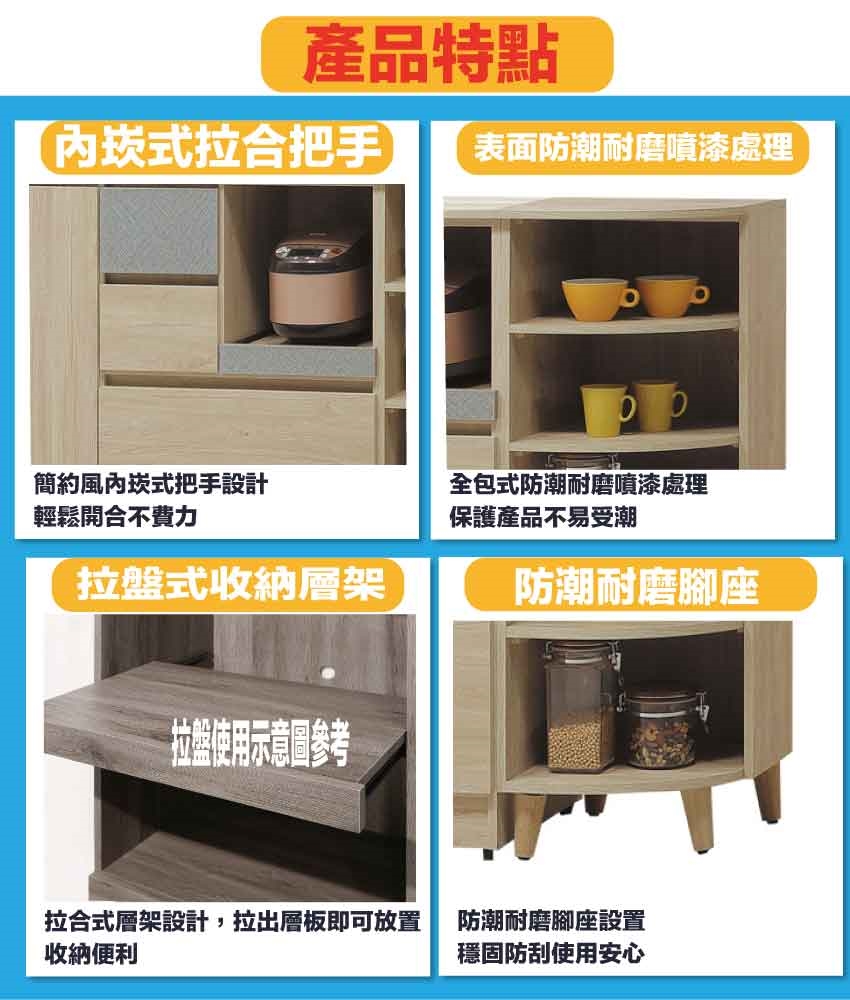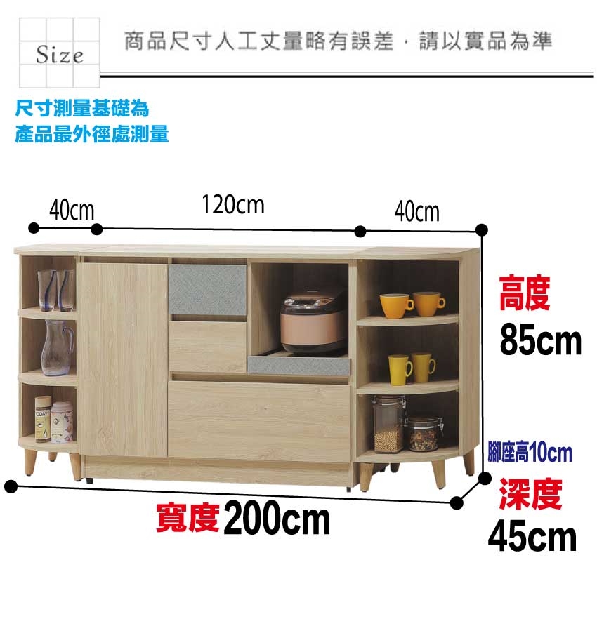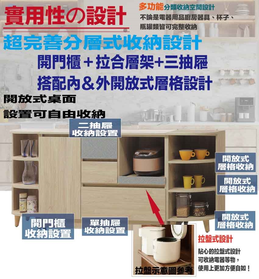 - ◆產品名稱:【綠家居】星空6.7尺開門三抽拉盤低餐櫃組合