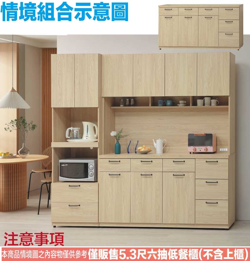 ★偏遠地區需額外加收運費,下標請先問與答詢問★ ★下訂前注意 由於商品流動較快,下訂前請先詢問是否有貨在下訂喔~★ 【綠家居】羅瑪5.3尺三門六抽低餐櫃(內含刀叉收納抽屜) 橡木紋色系+現代簡約風格+安心材質製造,使用放心+搭配居家更便利,整體採用防蛀木心板+防潮耐磨底座(可調高低水平)等安心材質製造搭配外層採用防潮耐磨噴漆處理 ,採用開門櫃+六抽屜(內含刀叉收納抽屜)+內開放層格等收納空間設計,全由專人配送到家,專業安心服務,替你省下更多時間!