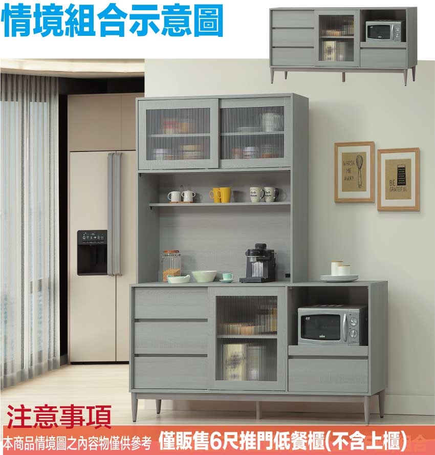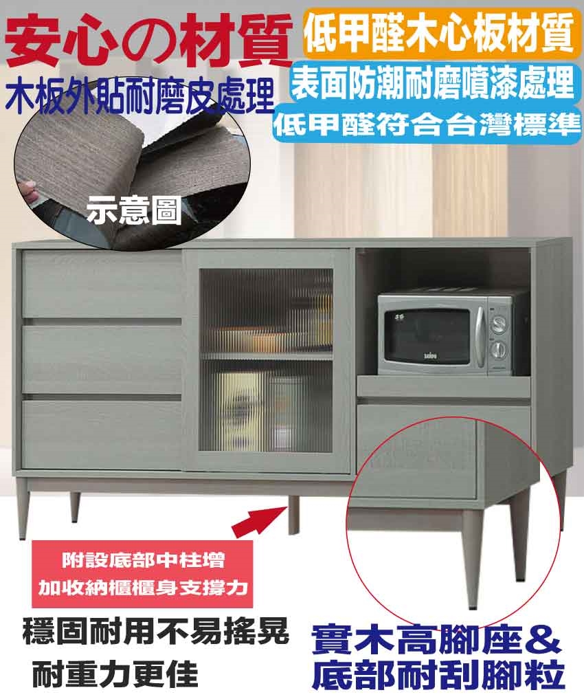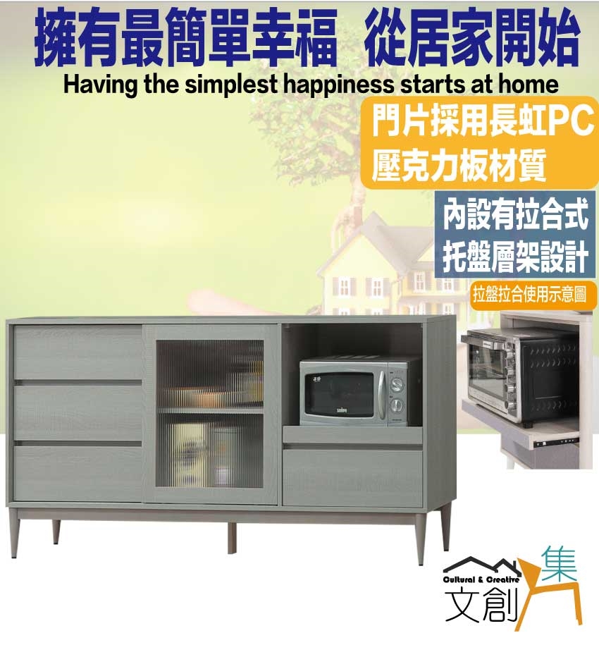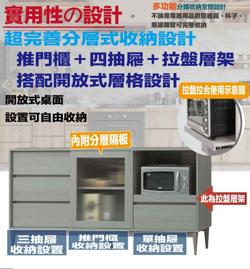 - ◆產品名稱:【綠家居】卡莎6尺推門四抽拉盤低餐櫃/收納櫃