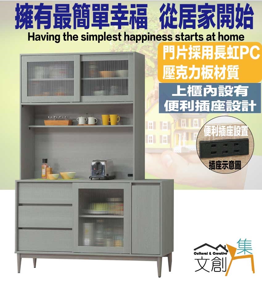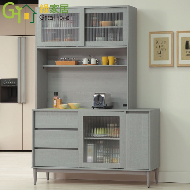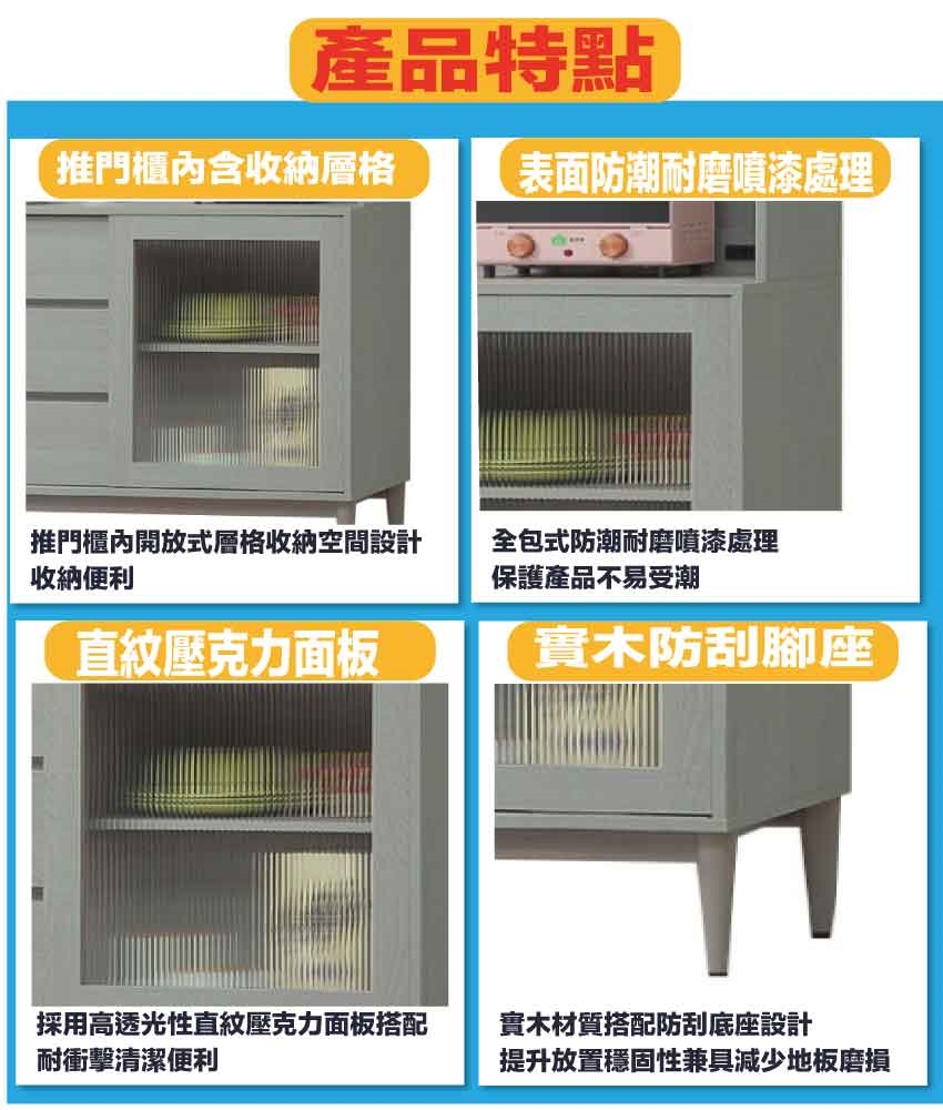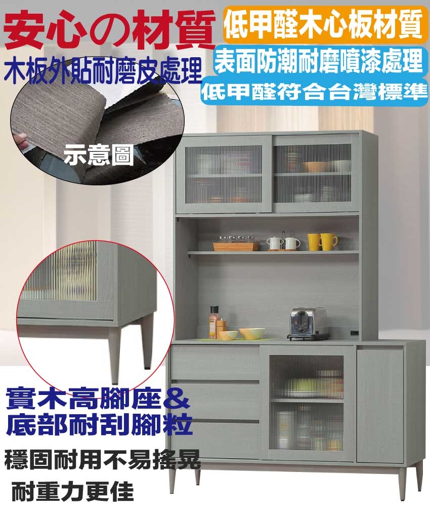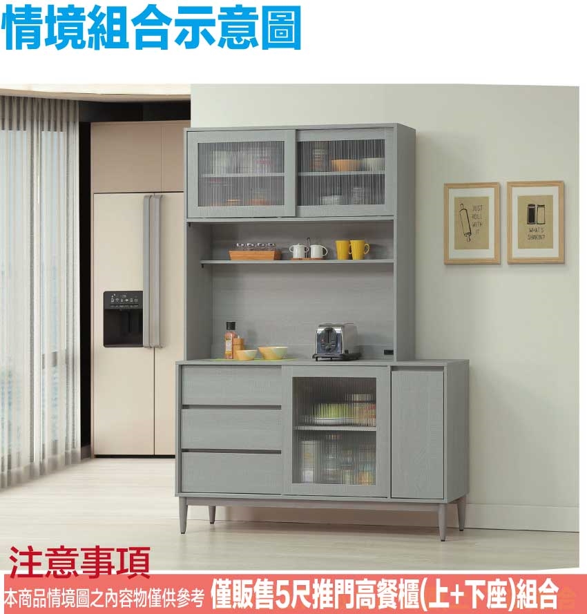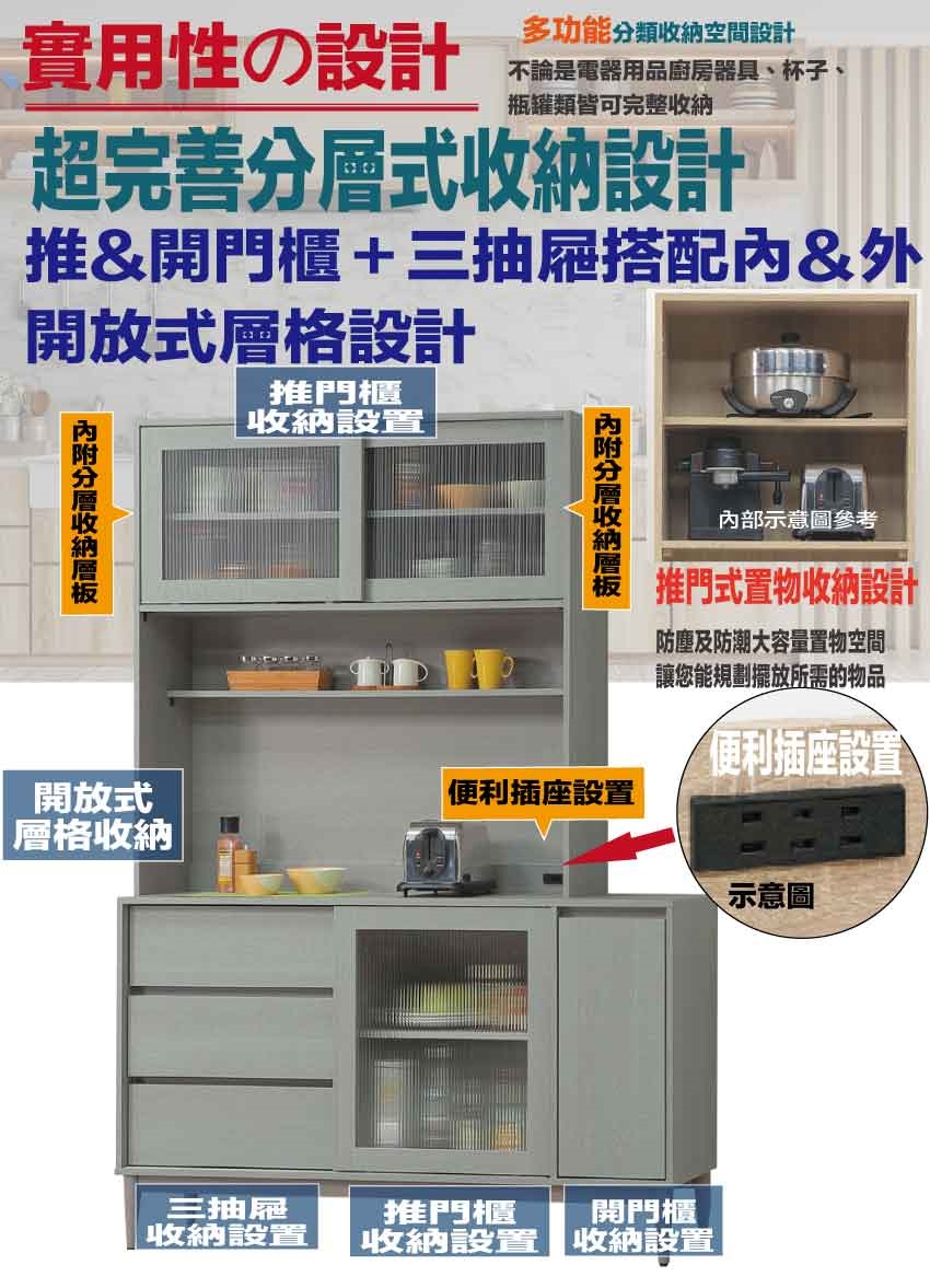 - ◆產品名稱:【綠家居】卡莎5尺推&開門三抽高餐櫃/收納櫃組合(內置便利插座)