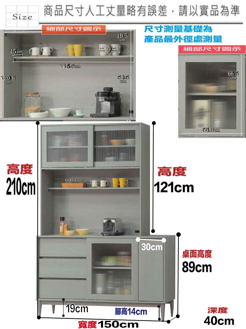 - 尺寸:(寬)150x(深)40x(高)210/公分