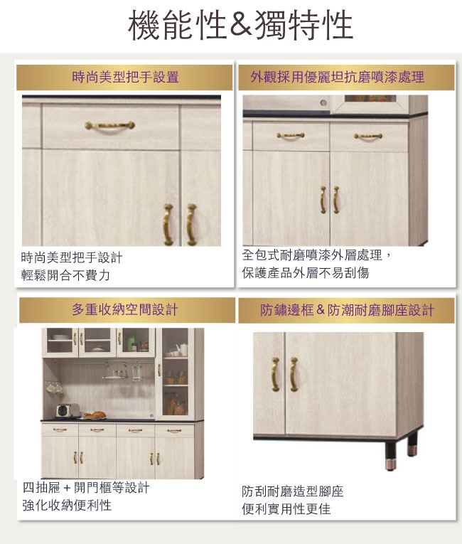 商品介紹 | 【綠家居】潘奈克 現代5.3尺雲紋石面餐櫃/收納櫃組合 橡木紋色系+現代簡約風格+安心材質製造,整體採用防蛀木心板+防刮耐磨&防鏽邊框腳座+五金滑軌結構+12mm雲紋石面板等安心材質製造,外層採用優利坦全包式耐磨噴漆處理搭配開門櫃+四抽屜+內&外開放式收納等收納設計,全由專人配送到家,專業安心服務,替你省下更多時間! 【商品特色】 橡木紋色系+現代簡約風格+安心材質製造,使用放心+搭配居家更便利 採用防蛀木心板+防刮耐磨&防鏽邊框腳座+五金滑軌結構+12mm雲紋石面板等安心材質製造 開門櫃+四抽屜+內&外開放式收納等收納設計 此商品不需要DIY組立,此商品為組立後之成品 品質保證、專業設計、貼心服務 全由專人配送到家,專業安心服務,替您省下更多時間 |
