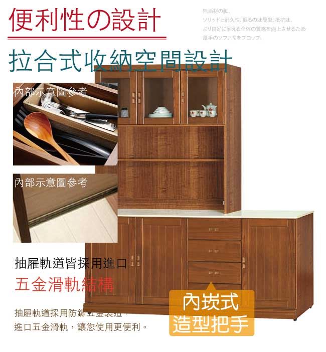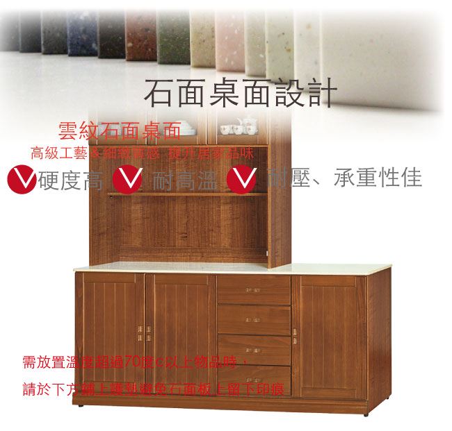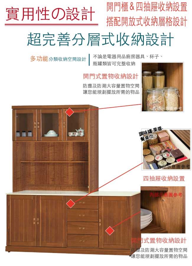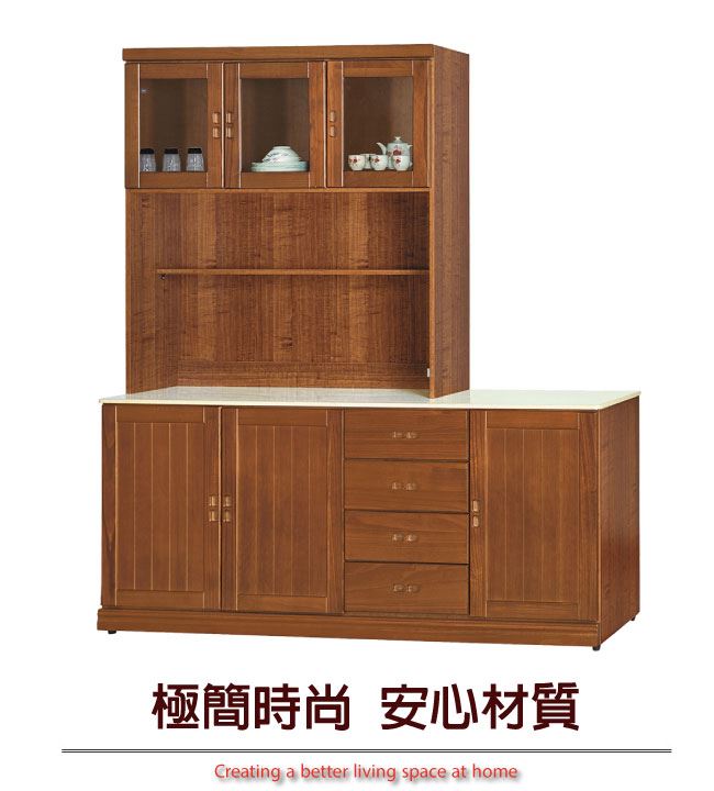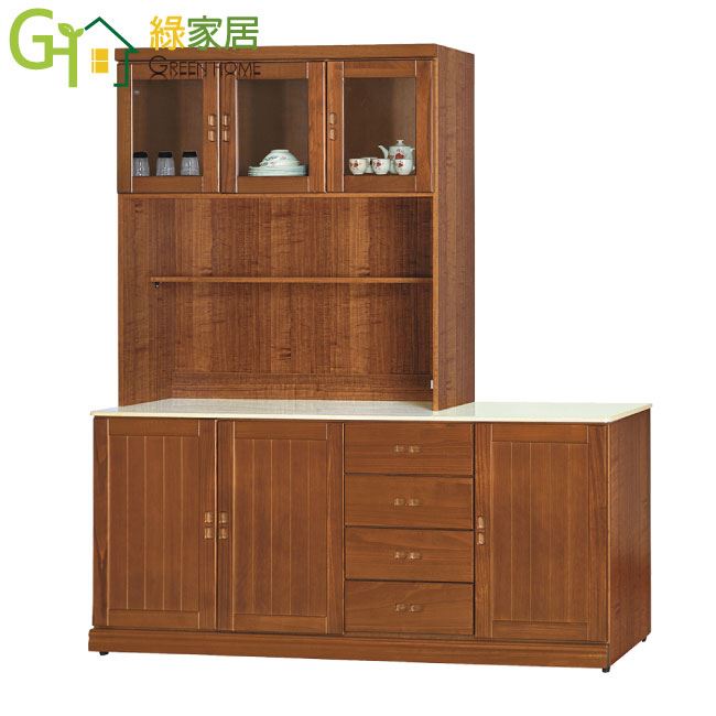 【綠家居】格瑞那 實木6尺雲紋石面餐櫃/收納櫃組合(上+下座)