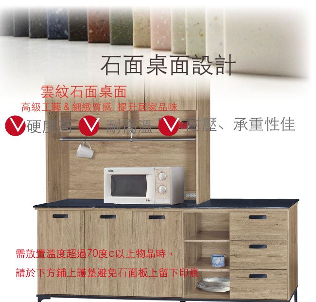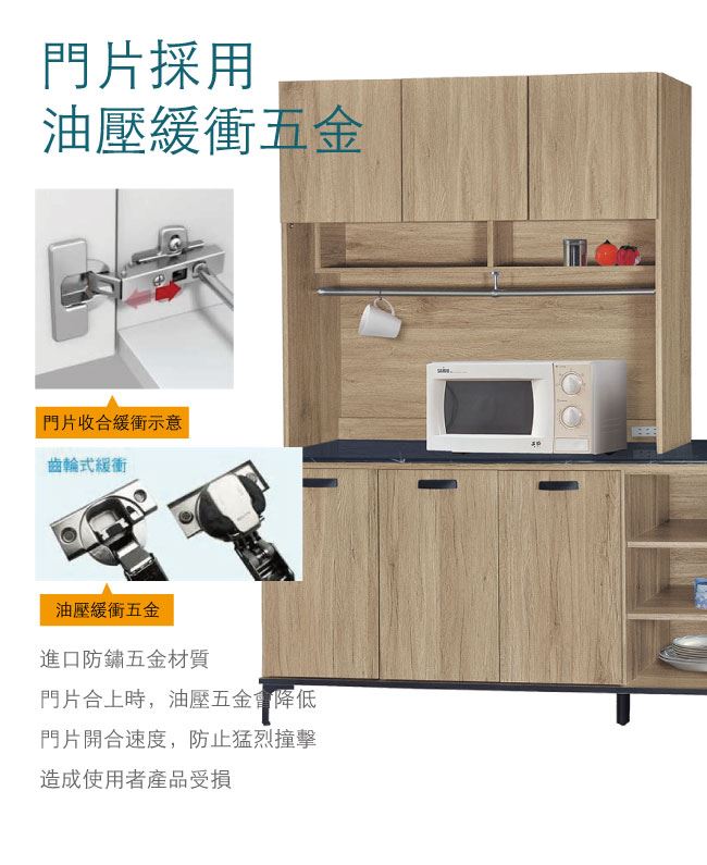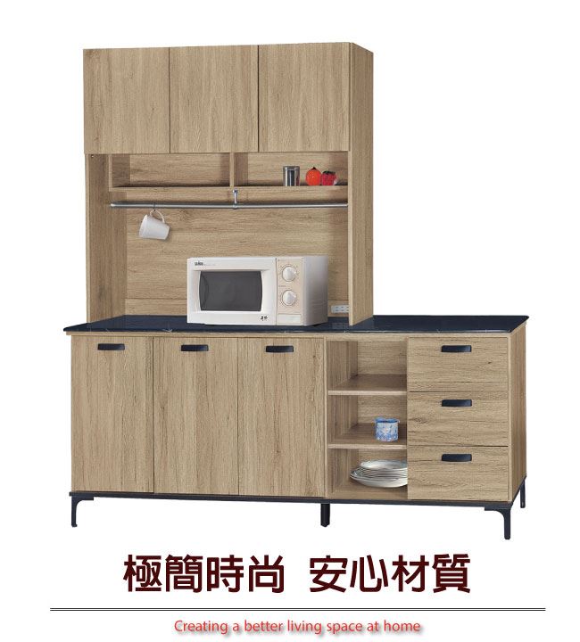 商品介紹 | 【綠家居】多米尼克 現代6尺雲紋石面餐櫃/收納櫃組合(上+下座) 橡木紋色系+現代簡約風格+安心材質製造,整體採用防蛀木心板+五金滑軌結構+1.2cm雲紋石面+防夾手緩衝門片五斤+黑鐵砂腳座等安心材質製造,外層採用優利坦三層全包式耐磨塗漆塗裝處理搭配採用開三抽屜+開放式層格+開門櫃等收納設計,全由專人配送到家,專業安心服務,替你省下更多時間! 【商品特色】 橡木紋色系+現代簡約風格+安心材質製造,使用放心+搭配居家更便利 採用防蛀木心板+五金滑軌結構+1.2cm雲紋石面+防夾手緩衝門片五斤+黑鐵砂腳座等安心材質製造 採用三抽屜+開放式層格+開門櫃等收納設計 此商品不需要DIY組立,此商品為組立後之成品 品質保證、專業設計、貼心服務 全由專人配送到家,專業安心服務,替您省下更多時間 |