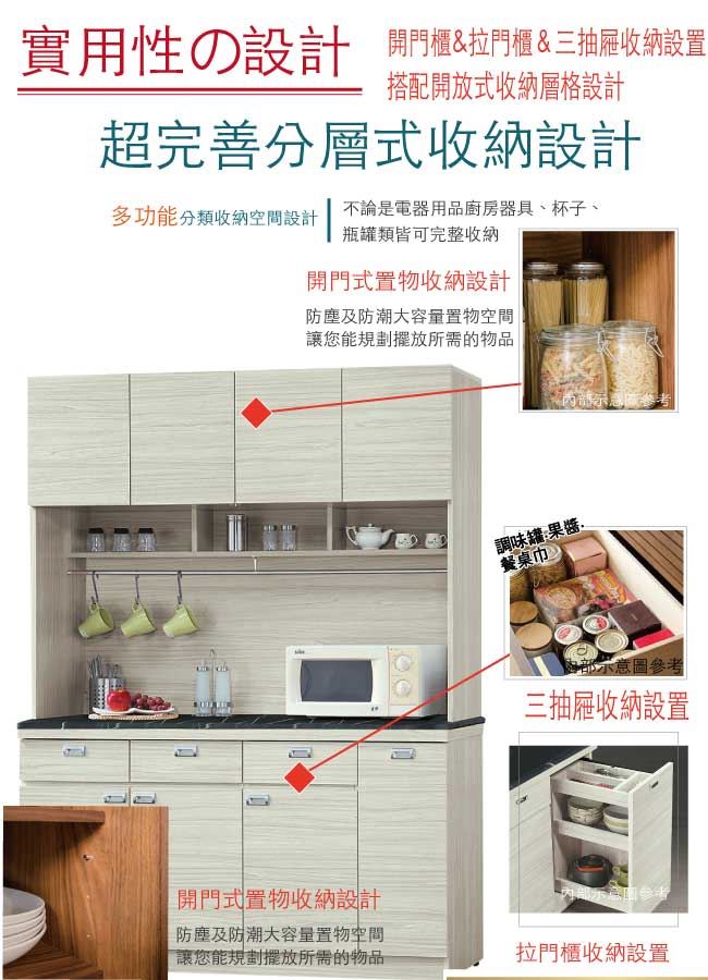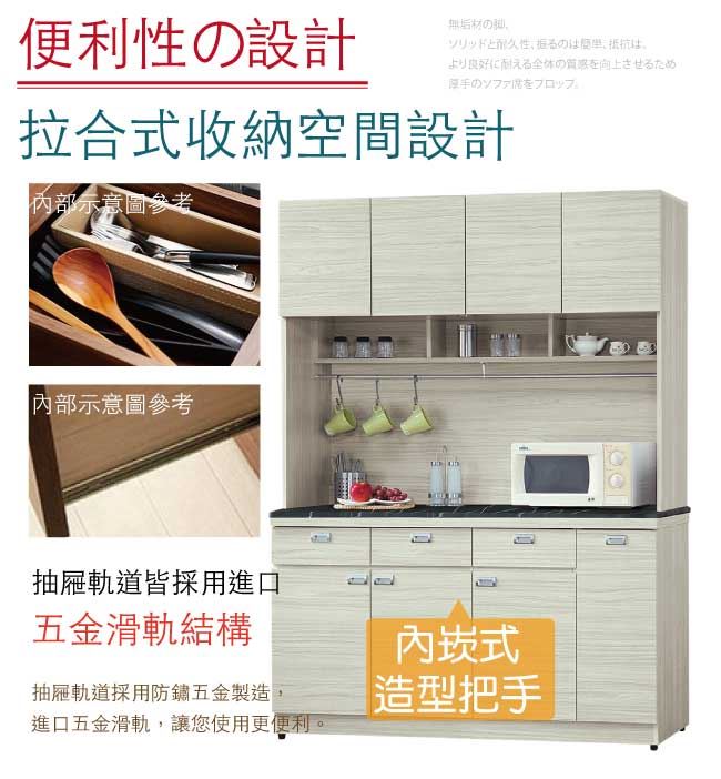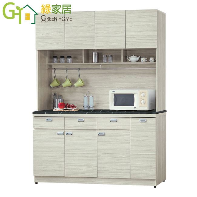 【綠家居】新加坡 現代5尺雲紋石面餐櫃/收納櫃組合(上+下座)