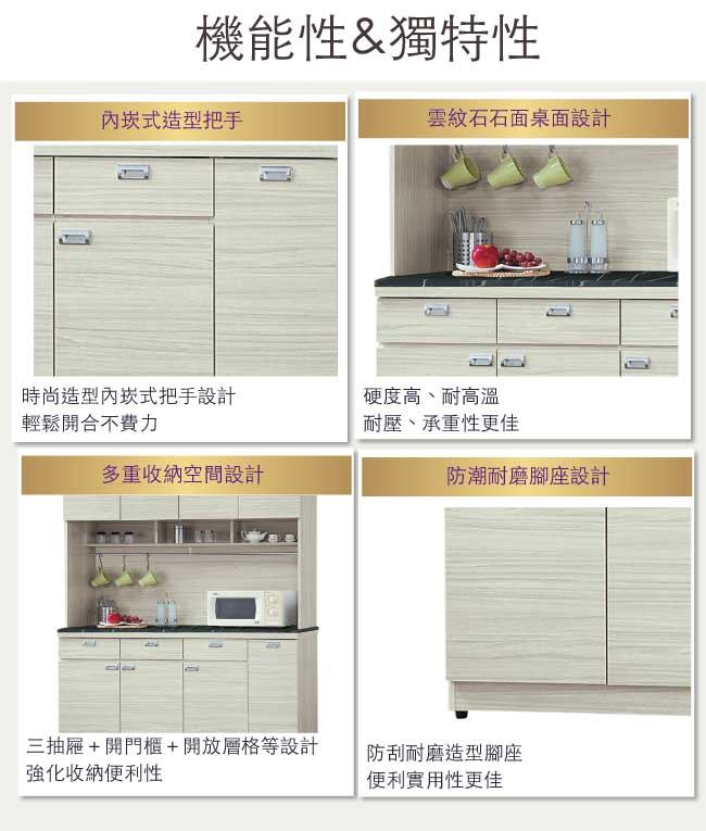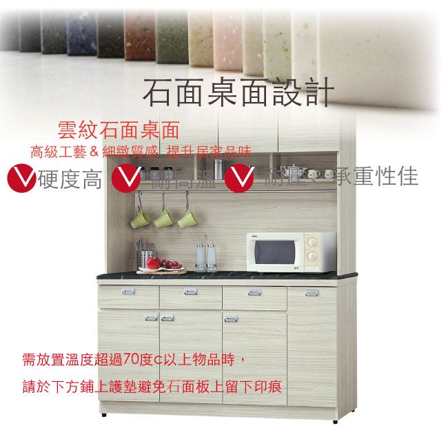 材質 | ◆產品名稱:【綠家居】新加坡 現代5尺雲紋石面餐櫃/收納櫃組合(上+下座) 收納櫃尺寸:(寬)151x(深)46x(高)198/公分 ◆材質: 材質:防蛀木心板+五金滑軌結構+1.2cm雲紋石面+耐磨防刮腳座 塗漆:優利坦全包式耐磨噴漆處理 |