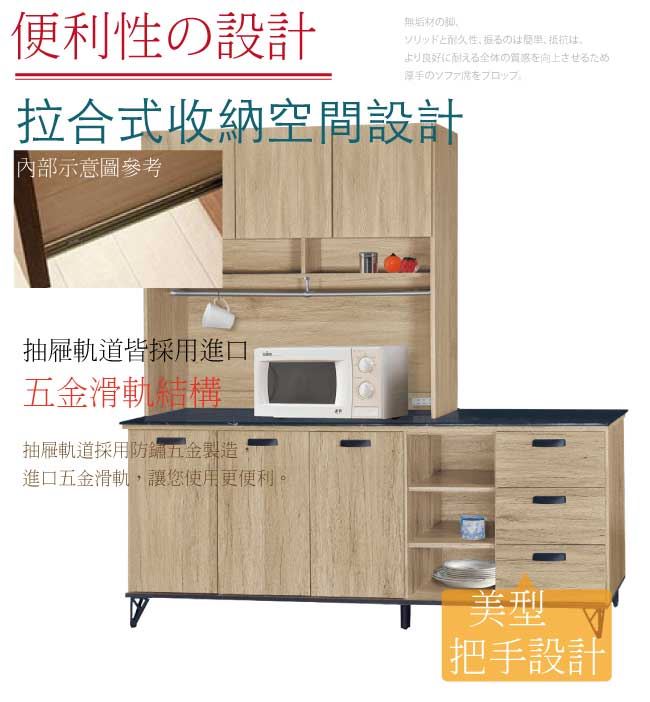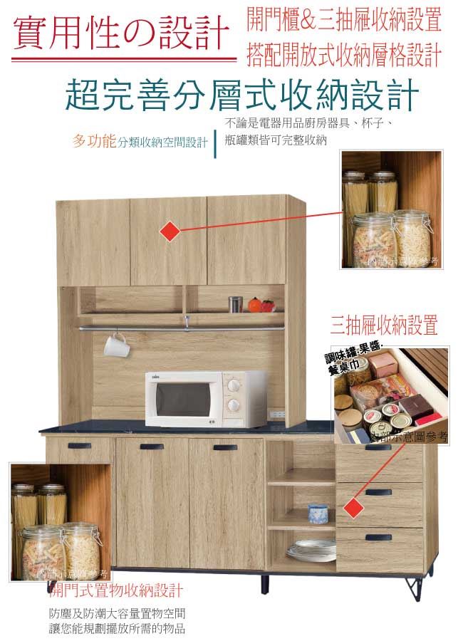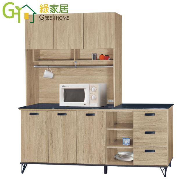 【綠家居】哈爾 橡木紋6尺三抽雲紋石面餐櫃組合