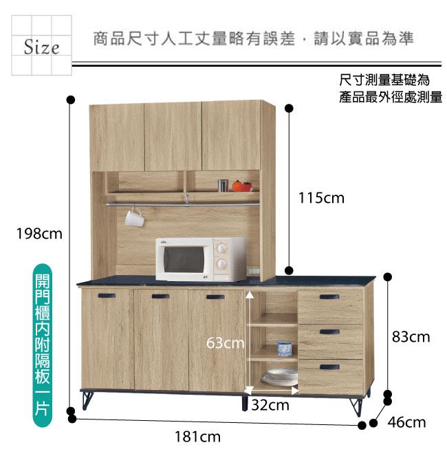 材質 | ◆產品名稱: 【綠家居】哈爾 橡木紋6尺三抽雲紋石面餐櫃組合 尺寸:(寬)181x(深)46x(高)198/公分 ◆材質: 材質:防蛀木心板+黑鐵砂腳座+五金滑軌結構+12mm雲紋石面板+防夾手緩衝門片五金 噴漆:防潮耐磨噴漆處理