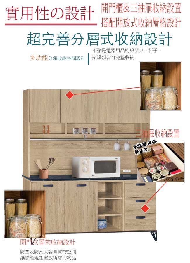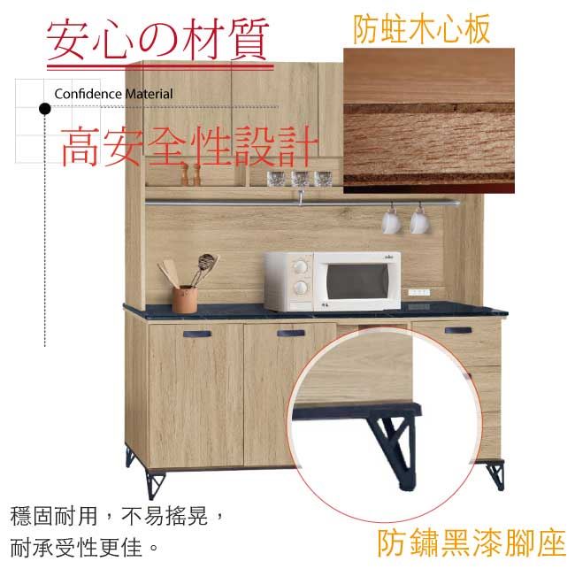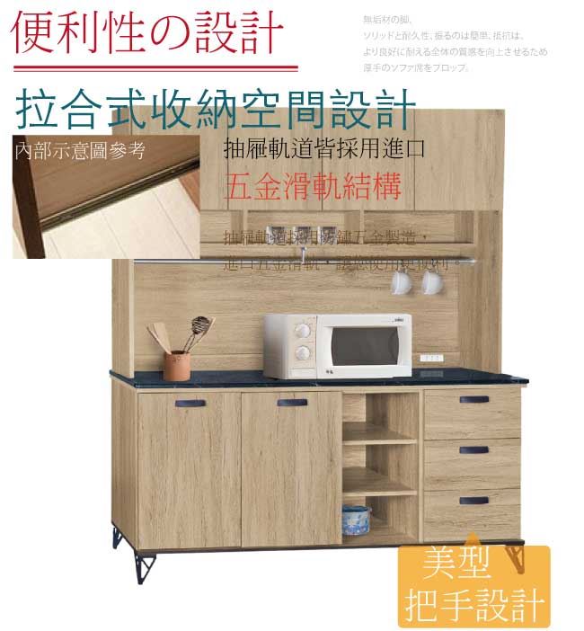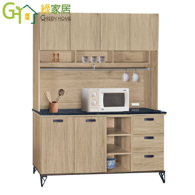【綠家居】哈爾 橡木紋5尺三抽雲紋石面餐櫃組合