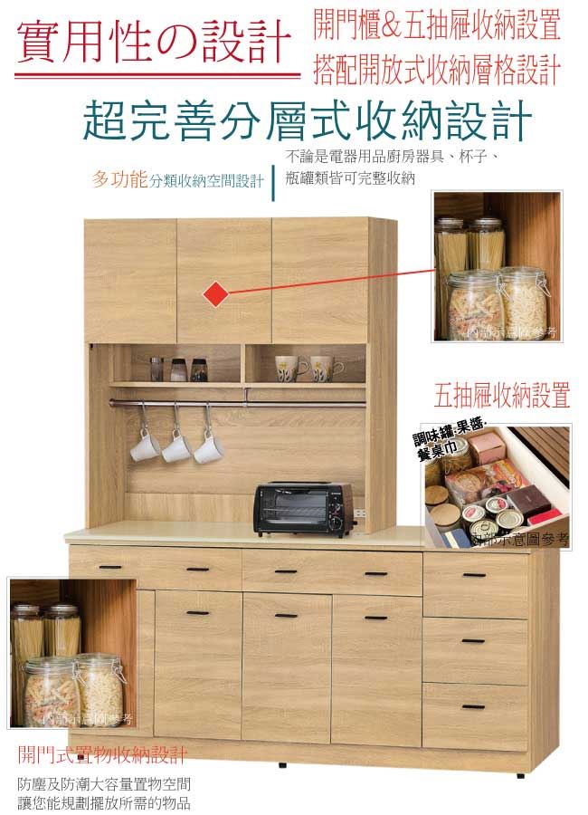 【綠家居】巴哈爾 五抽6尺木紋雲紋石面餐櫃組合