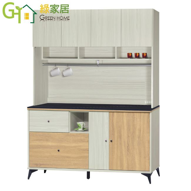 【綠家居】貝斯安 六門5尺黑岩板石面餐櫃組合(二色可選)