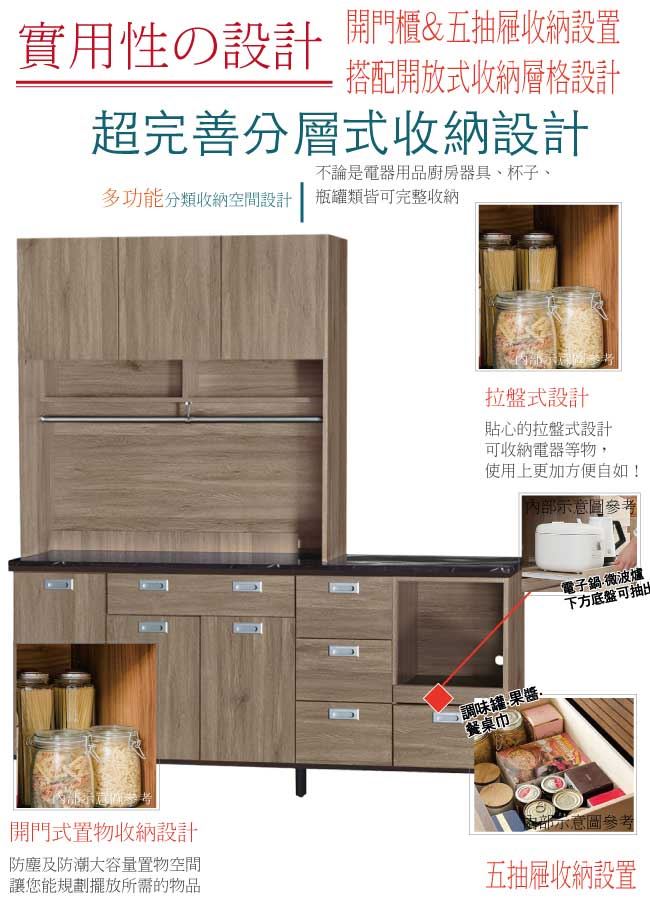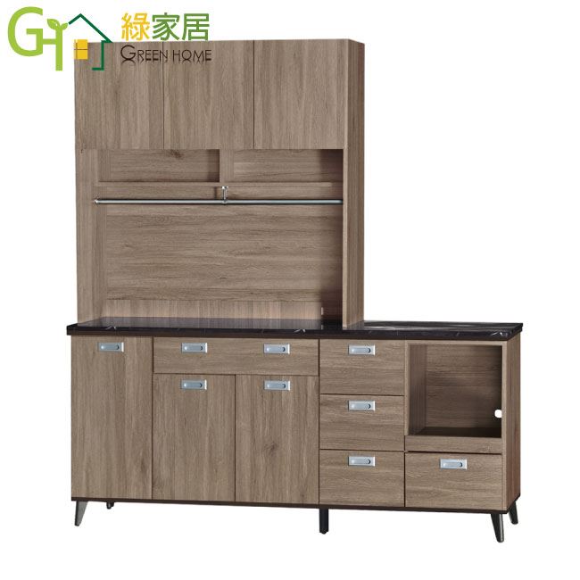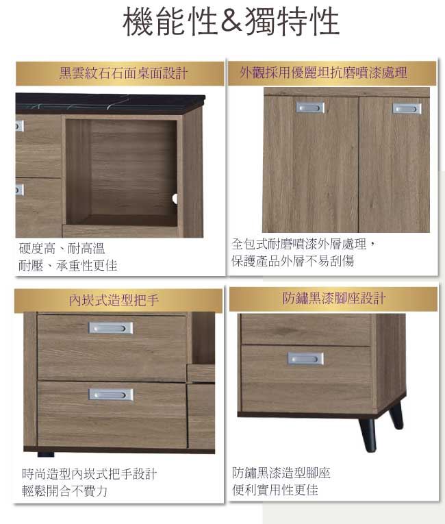【綠家居】安貝斯 灰橡6尺黑白雲紋石面餐櫃組合