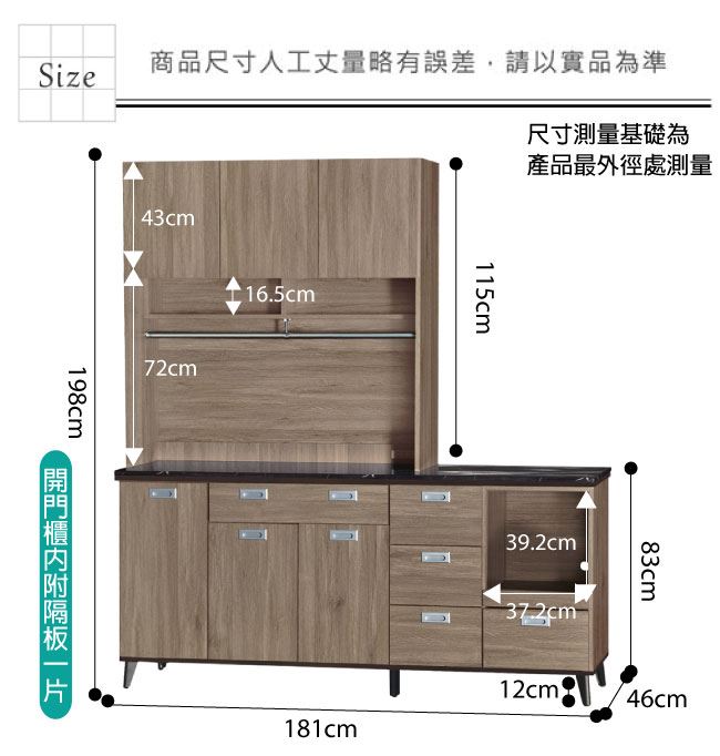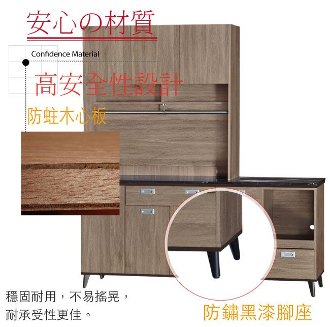 材質 | ◆產品名稱: 【綠家居】安貝斯 灰橡6尺黑白雲紋石面餐櫃組合 尺寸:(寬)181x(深)46x(高)198/公分 ◆材質: 材質:防蛀木心板+黑鐵砂腳座+五金滑軌結構+12mm黑白雲紋石面板+防夾手緩衝門片五金 噴漆:防潮耐磨噴漆處理