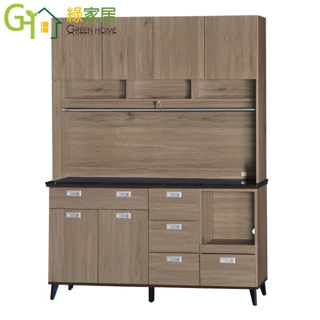 【綠家居】安貝斯 灰橡5尺黑白雲紋石面餐櫃組合