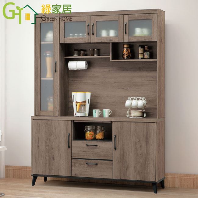 【綠家居】艾歐洛 現代5尺六門二抽高餐櫃/收納櫃組合