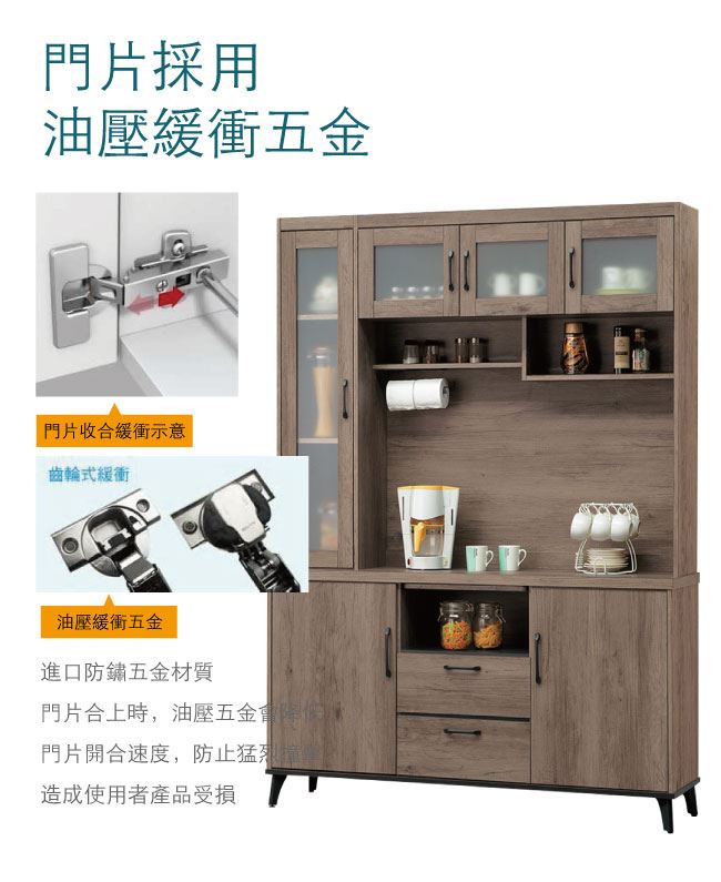商品 介紹 | 【綠家居】艾歐洛 現代5尺六門二抽高餐櫃/收納櫃組合 橡木紋色系+現代簡約風格+安心材質製造,整體採用防蛀木心板+五金滑軌結構+防潮黑漆腳座+防夾手緩衝門片五金等安心材質製造,外層採用優利坦全包式耐磨噴漆處理搭配採用開門櫃+開放式收納+二抽屜等便利設計,全由專人配送到家,專業安心服務,替你省下更多時間! 【商品特色】 橡木紋色系+現代簡約風格+安心材質製造,使用放心+搭配居家更便利 採用防蛀木心板+五金滑軌結構+防潮黑漆腳座+防夾手緩衝門片五金等安心材質製造 採用開門櫃+開放式收納+二抽屜等便利設計 此商品不需要DIY組立,此商品為組立後之成品 品質保證、專業設計、貼心服務 全由專人配送到家,專業安心服務,替您省下更多時間 |