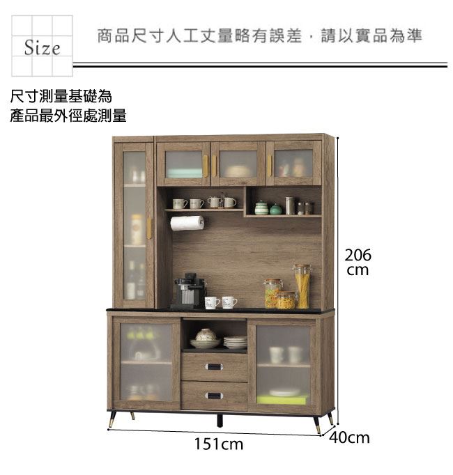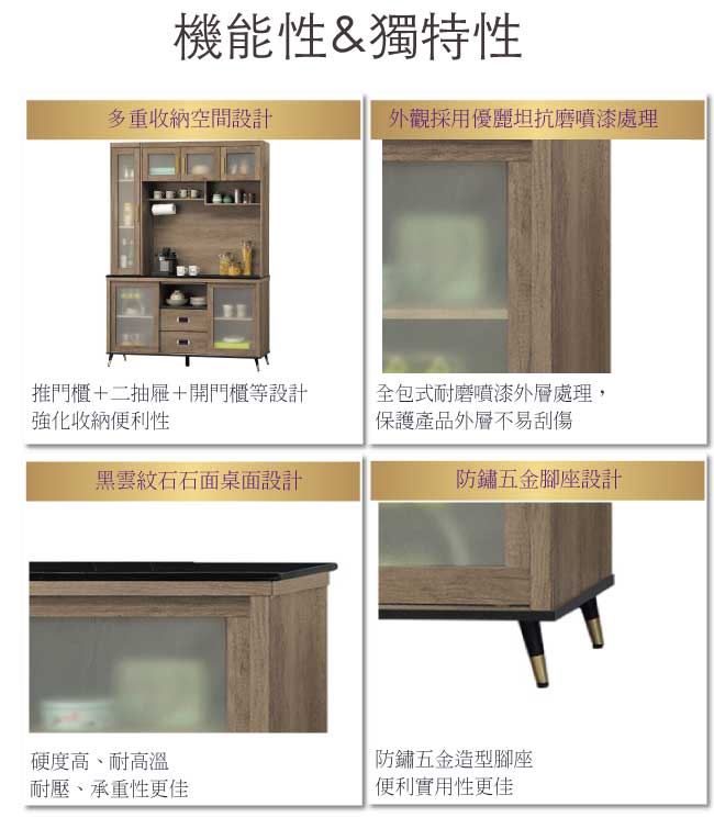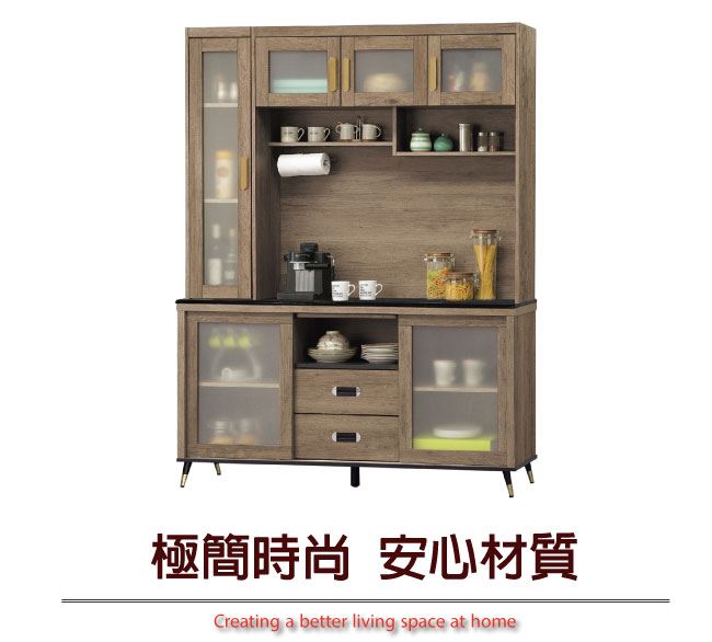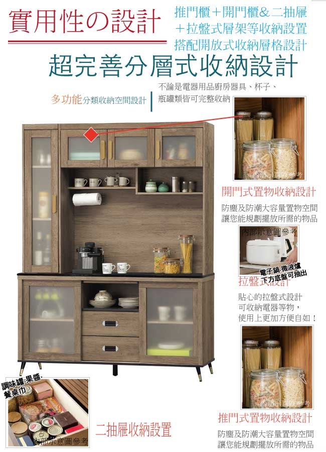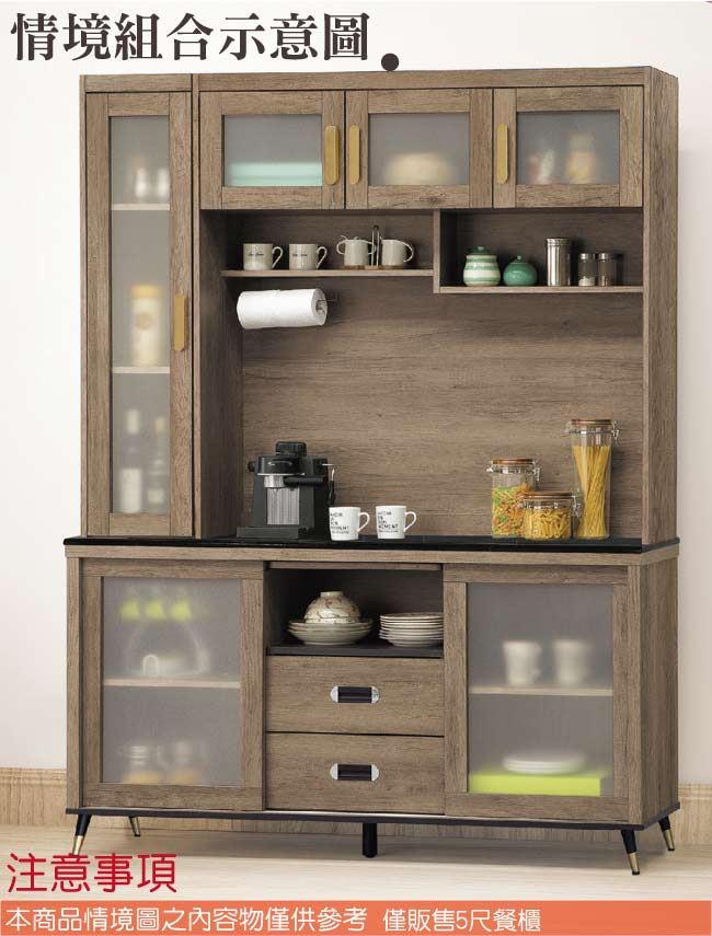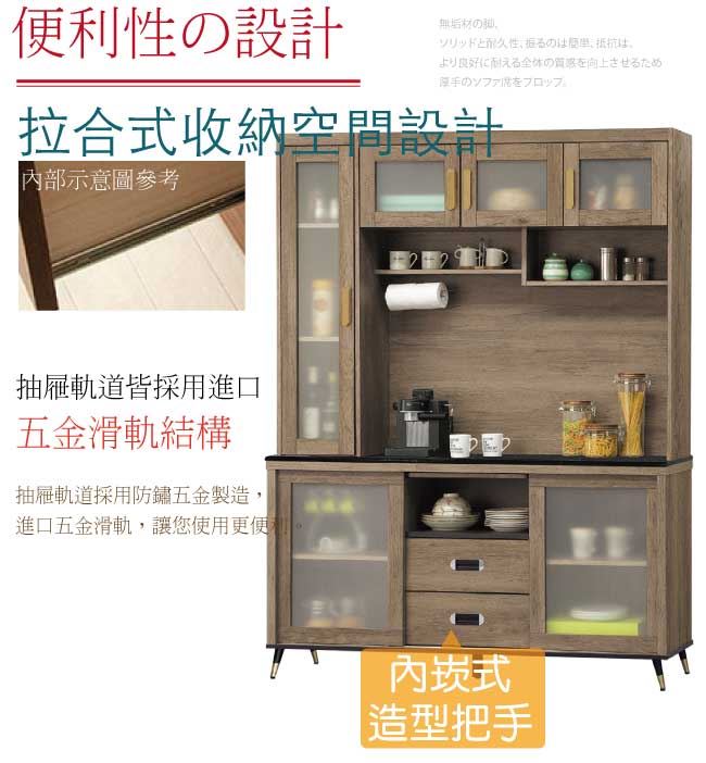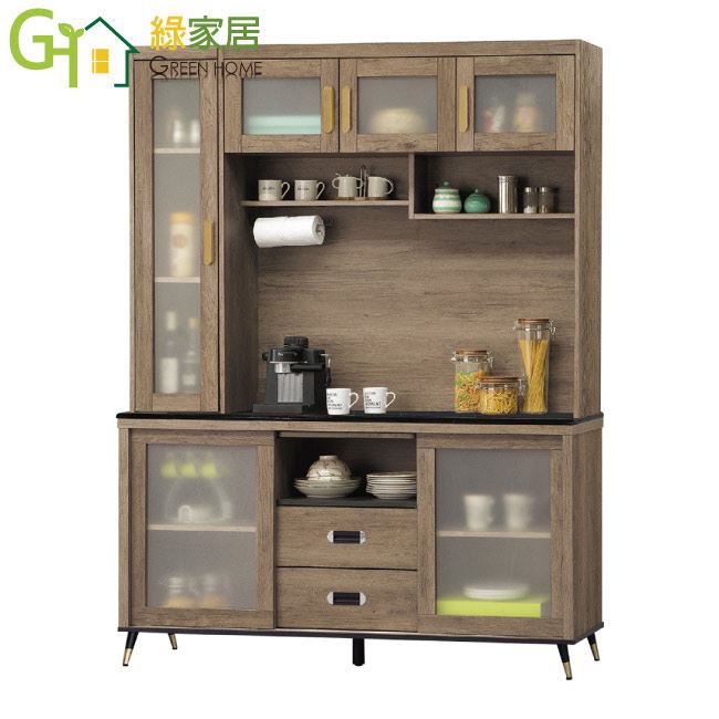 - ◆產品名稱:【綠家居】波依5尺雲紋石面拉盤高餐櫃/收納櫃組合