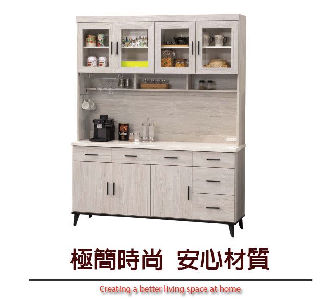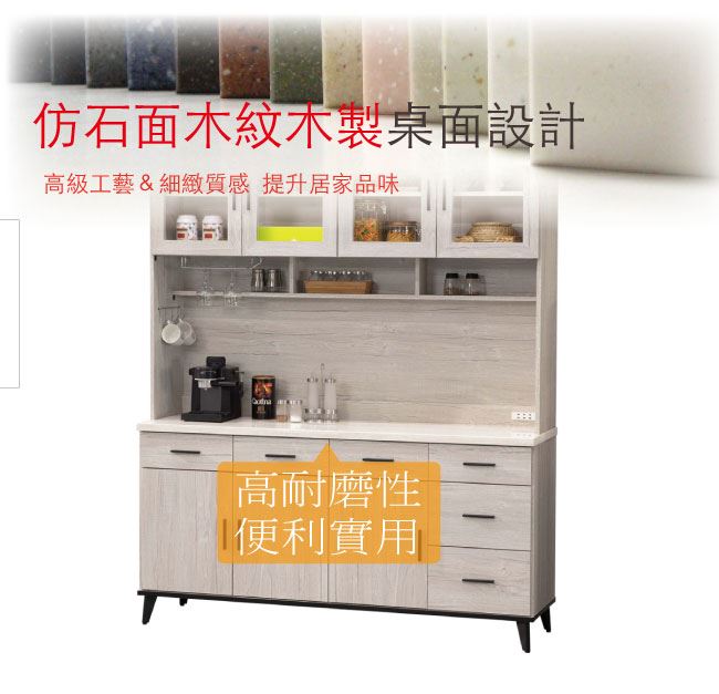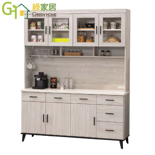 商品 介紹 | 【綠家居】艾美可5.3尺七門六抽高餐櫃/收納櫃組合 白橡木紋色系+現代簡約風格+安心材質製造,整體採用防蛀木心板+防潮黑漆腳座+五金滑軌結構+防夾手緩衝門片五金+仿雲紋石面紋路木質桌面板等安心材質製造,產品外層採用防潮耐磨噴漆處理搭配採用開門櫃+六抽屜+內&外開放式層格等空間設計,全由專人配送到家,專業安心服務,替你省下更多時間! 【商品特色】 白橡木紋色系+現代簡約風格+安心材質製造,使用放心+搭配居家更便利 採用防蛀木心板+防潮黑漆腳座+五金滑軌結構+防夾手緩衝門片五金+仿雲紋石面紋路木質桌面板等安心材質製造 產品外層採用防潮耐磨噴漆處理 搭配採用開門櫃+六抽屜+內&外開放式層格等空間設計 此商品不需要DIY組立,此商品為組立後之成品 全由專人配送到家,專業安心服務,替您省下更多時間 |