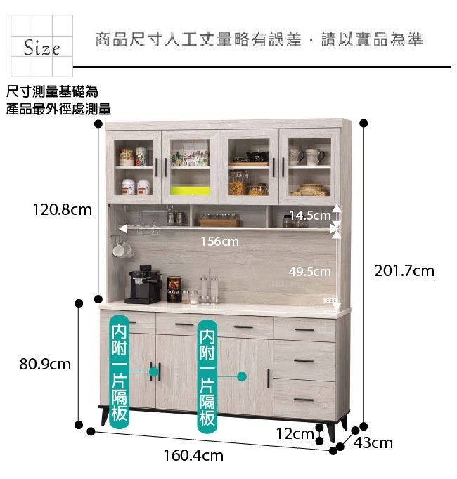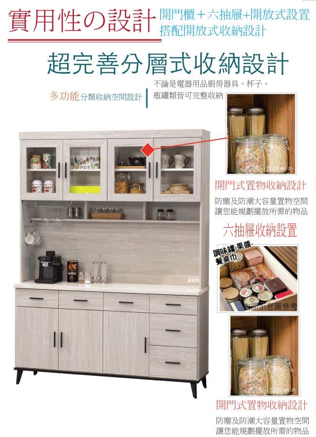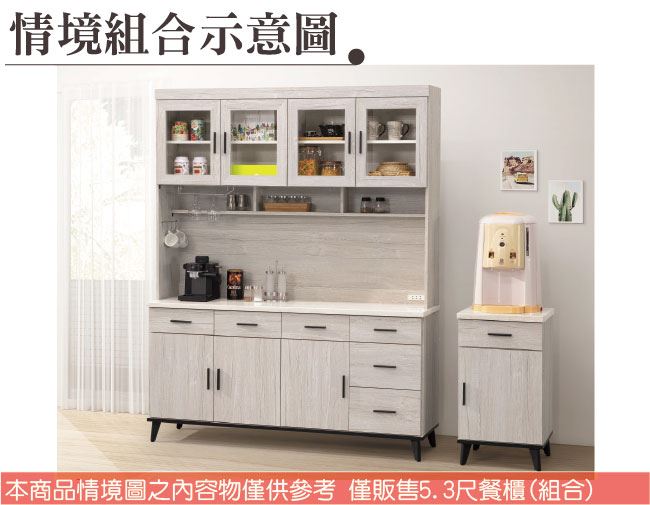 - ◆產品名稱:【綠家居】艾美可5.3尺七門六抽高餐櫃/收納櫃組合