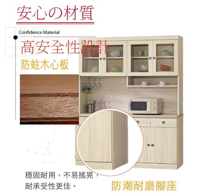 材質 | ◆產品名稱:【綠家居】米瑪5.3尺六門三抽高餐櫃/收納櫃組合 尺寸:(寬)160.4x(深)43(高)203.1/公分 ◆材質: 材質:防蛀木心板+防刮耐磨腳座+五金滑軌結構+仿雲紋石紋木質桌面板 噴漆:防潮耐磨噴漆處理