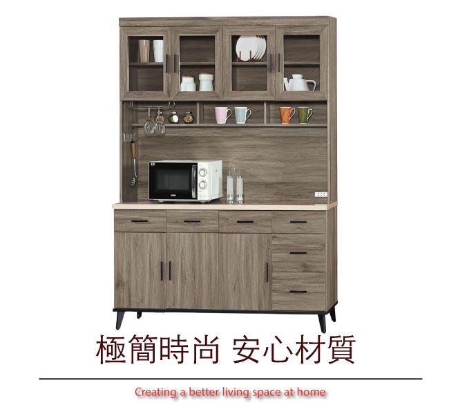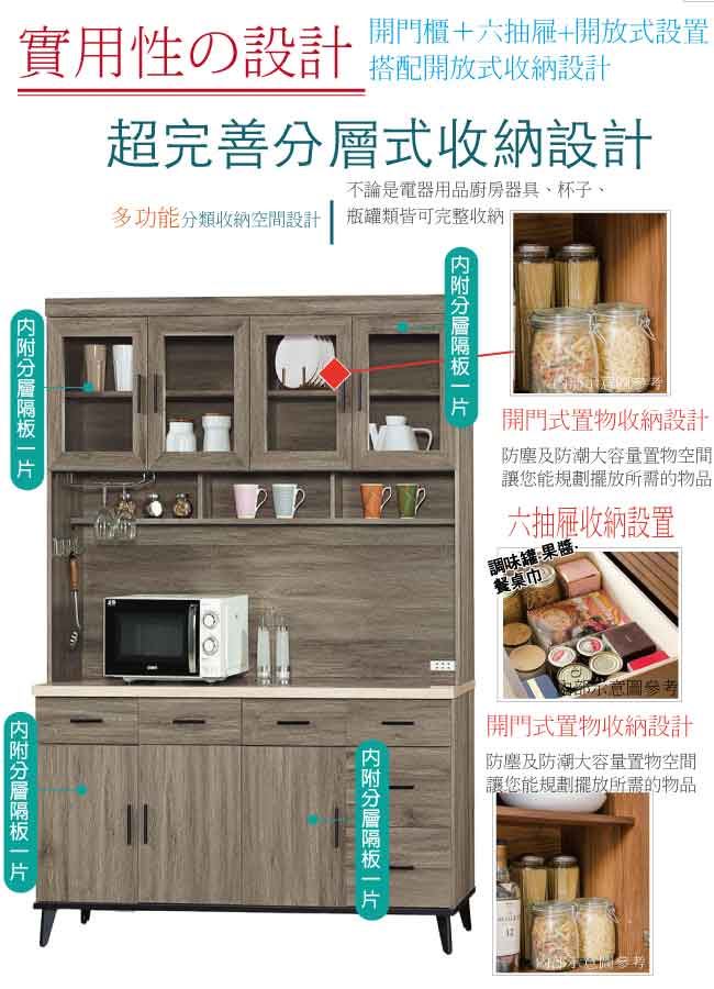 【綠家居】米丘灰橡5.3尺七門六抽高餐櫃/收納櫃組合