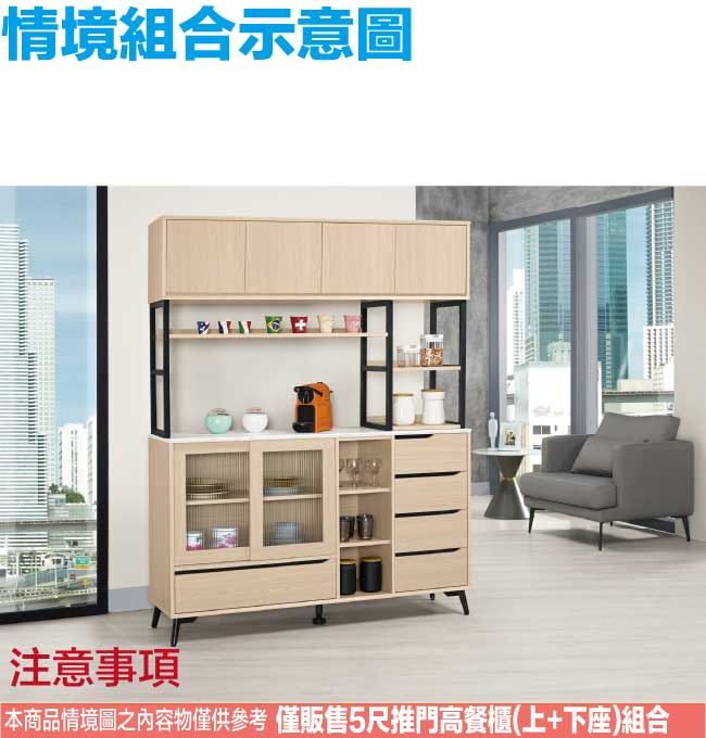 【綠家居】蘭達5尺推&開門玻璃五抽高餐櫃組合
