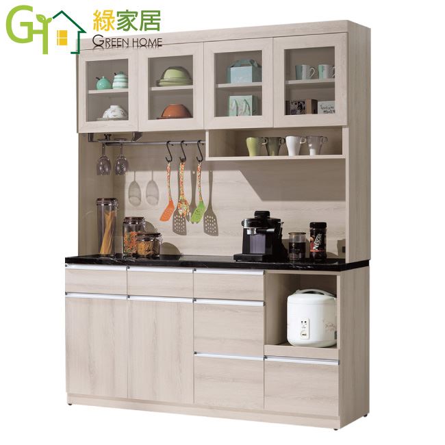 【綠家居】布蒂5.4尺雲紋石面高餐櫃/收納櫃組合