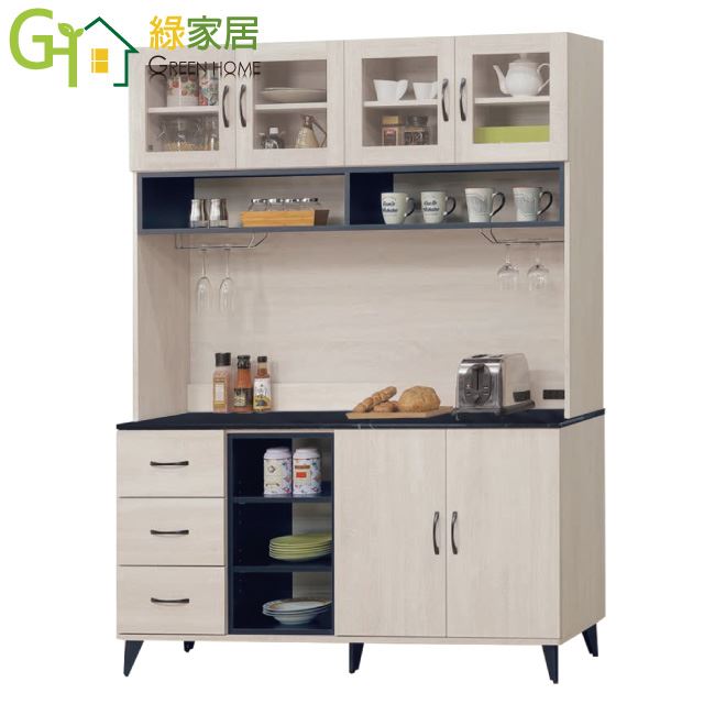 【綠家居】歐維5尺雲紋石面&岩板高餐櫃組合(二色可選)