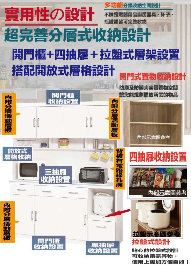 商 品 介 紹 | 【綠家居】巴克雅5.4尺岩板四抽拉盤高餐櫃/收納櫃組合 簡約白色系+現代簡約風格+安心材質製造,整體採用防蛀木心板+防潮耐磨腳座+五金滑軌結構+12mm高硬度岩板桌面板等安心材質製造,產品外層表面採用防潮亮面噴漆處理 搭配採用開門櫃+四抽屜+拉合式層盤+內&外開放層格等收納空間設計,全由專人配送到家,專業安心服務,替你省下更多時間! 【商品特色】 簡約白色系+現代簡約風格+安心材質製造,使用放心+搭配居家更便利 採用防蛀木心板+防潮耐磨腳座+五金滑軌結構+12mm高硬度岩板桌面板等安心材質製造 搭配採用開門櫃+四抽屜+拉合式層盤+內&外開放層格等收納空間設計 此商品不需要DIY組立,此商品為組立後之成品 品質保證、專業設計、貼心服務 全由專人配送到家,專業安心服務,替您省下更多時間
