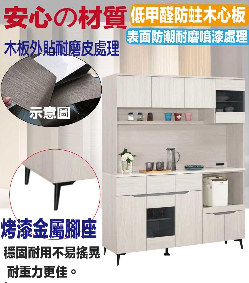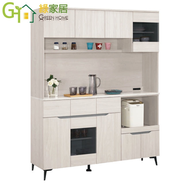 ★偏遠地區需額外加收運費,下標請先問與答詢問★ ★下訂前注意 由於商品流動較快,下訂前請先詢問是否有貨在下訂喔~★ 【綠家居】丹尼5尺八門拉盤高餐櫃組合 木紋雙色系+安心材質製造,使用放心+搭配居家更便利,採用防蛀木心板+烤漆五金腳座+防夾手緩衝門片五金+5mm強化灰玻璃+仿石紋耐磨美耐皿桌面板+五金滑軌結構等安心材質製造 ,外層採用防潮耐磨噴漆處理搭配採用開門櫃+拉盤層架+三抽屜+內&外開放層格+便利插座等收納空間設計,全由專人配送到家,專業安心服務,替你省下更多時間!