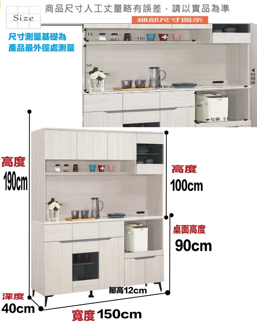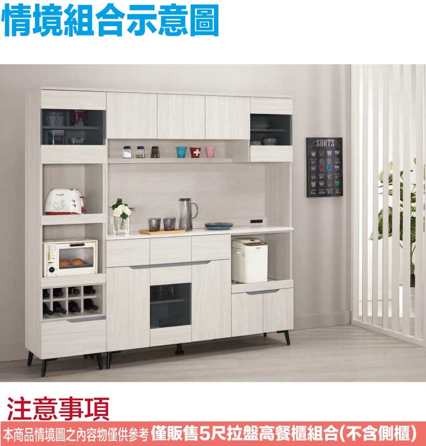- ◆產品名稱:【綠家居】丹尼5尺八門拉盤高餐櫃組合