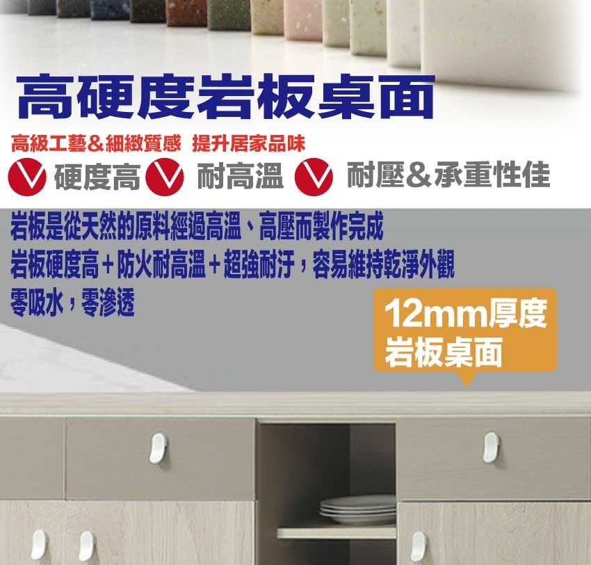 採用防蛀木心板+防夾手緩衝五金+烤漆五金腳座+長虹PC壓克力面板+12mm高硬度岩板桌面板+五金滑軌結構等安心材質製造