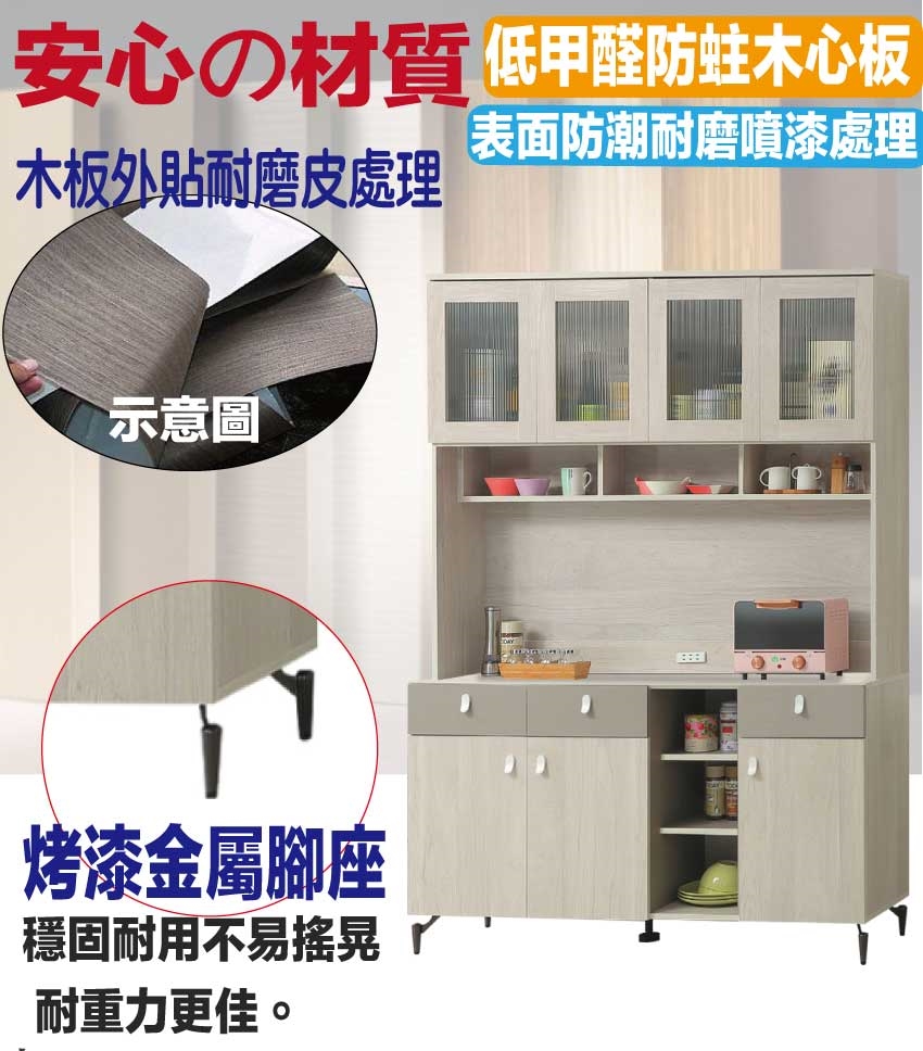 ★偏遠地區需額外加收運費,下標請先問與答詢問★ ★下訂前注意 由於商品流動較快,下訂前請先詢問是否有貨在下訂喔~★ 【綠家居】蒂斯5尺七門三抽高餐櫃組合 現代雙色系+安心材質製造,使用放心+搭配居家更便利,採用防蛀木心板+防夾手緩衝五金+烤漆五金腳座+長虹PC壓克力面板+五金滑軌結構等安心材質製造 ,外層採用防潮耐磨噴漆處理搭配採用開門櫃+三抽屜+內&外開放層格等收納空間設計,全由專人配送到家,專業安心服務,替你省下更多時間!