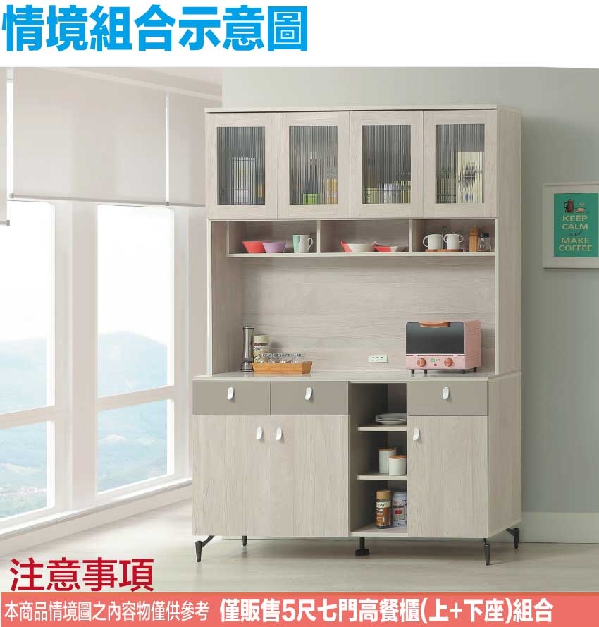 - ◆產品名稱:【綠家居】蒂斯5尺七門三抽高餐櫃組合