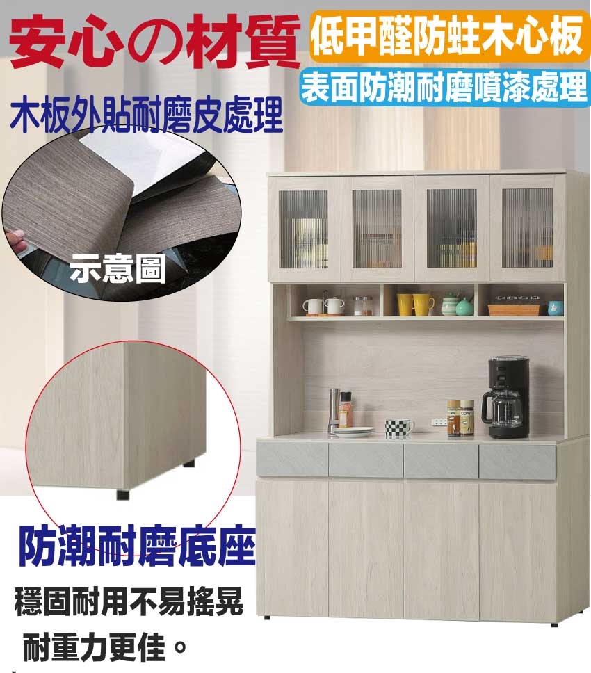 - ◆產品名稱:【綠家居】莫森5尺岩板四抽高餐櫃組合