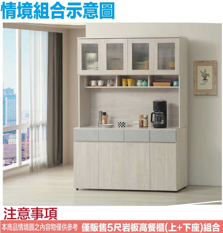【綠家居】莫森5尺岩板四抽高餐櫃組合