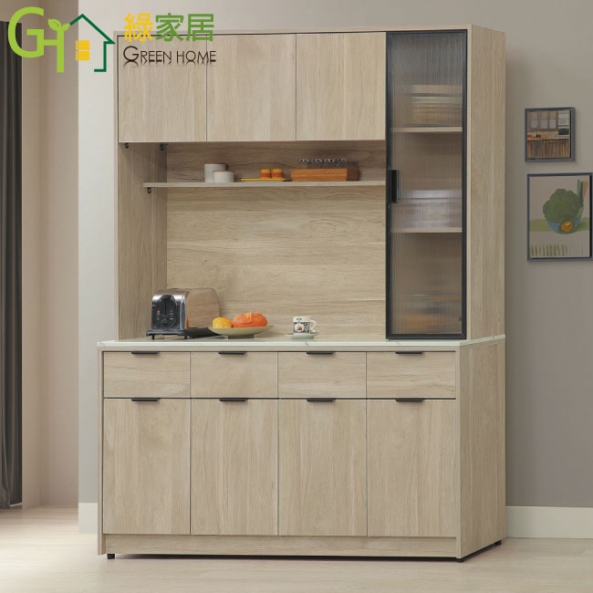 【綠家居】畢克爾5.3尺雲紋石面鋁框高餐櫃組合