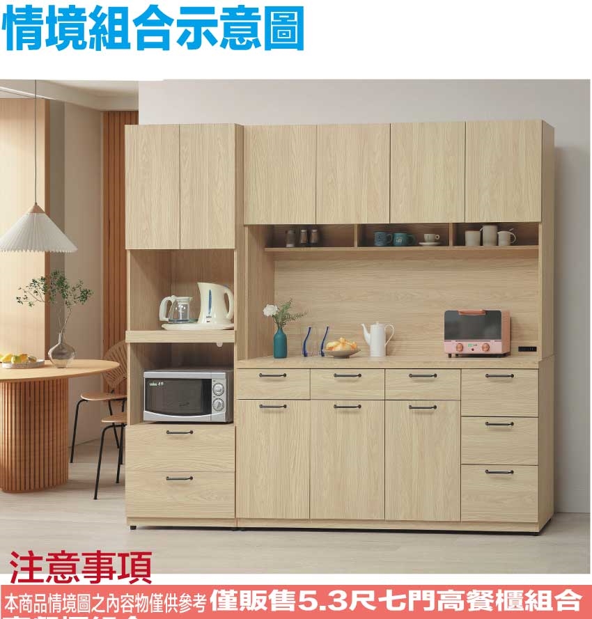 - ◆產品名稱:【綠家居】芮德5.3尺七門六抽高餐櫃組合