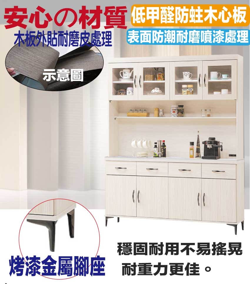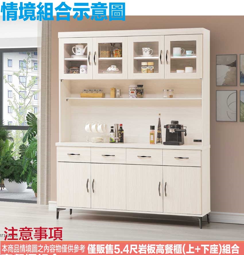 - ◆產品名稱:【綠家居】安特淺橡5.4尺岩板四抽高餐櫃組合