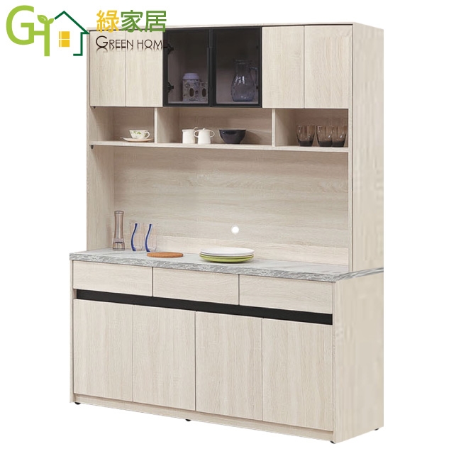 ★偏遠地區需額外加收運費,下標請先問與答詢問★ ★下訂前注意 由於商品流動較快,下訂前請先詢問是否有貨在下訂喔~★ 【綠家居】達斯5尺鋁框玻璃高餐櫃組合 木紋雙色系+現代簡約風格+安心材質製造,使用放心+搭配居家更便利,整體採用防蛀木心板+防潮耐磨腳座+防夾手緩衝五金+五金滑軌結構+耐磨美耐皿仿大理石紋桌面板+黑色鋁製框架+強化玻璃門片等材質製造搭配外層採用優莉坦耐磨全包式噴漆處理 ,採用開門櫃+三抽屜+內&外開放層格等收納空間設計,全由專人配送到家,專業安心服務,替你省下更多時間!