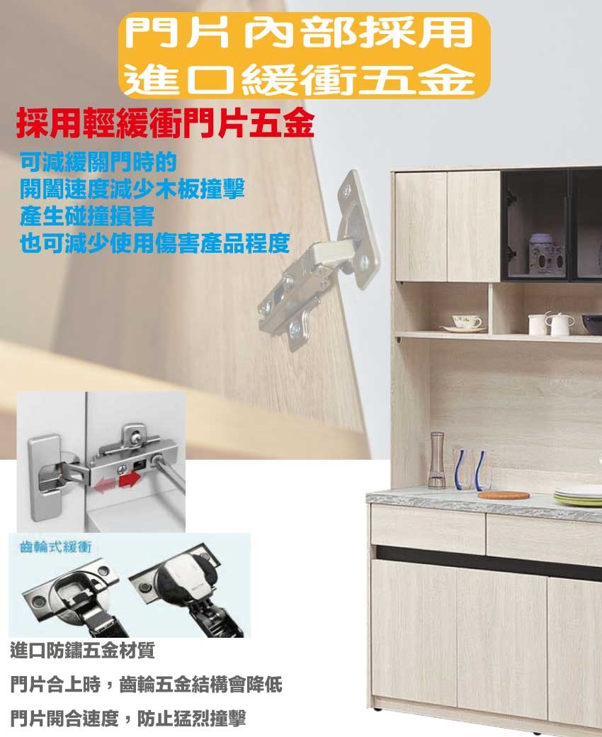 材質:防蛀木心板+防潮耐磨底座+防夾手緩衝五金+五金滑軌結構+黑色鋁製框架+強化玻璃門片+耐磨美耐皿仿大理石紋桌面板