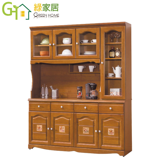 | 【綠家居】布萊 典雅5.3尺多功能餐櫃/收納櫃組合(上+下座) 優雅外觀造型設計,整體材質採用防蛀木心板+松木實木+五金滑軌結構+優利坦抗磨三層全包式塗裝處理等設計 ,防止受潮,增加支撐力,堅固不會塌陷,採用四抽屜+開放式層格+八門櫃等收納空間設計,高雅的紋路,營造隨性時尚感,清潔容易不麻煩。全由專人配送到家,專業安心服務,替你省下更多時間!