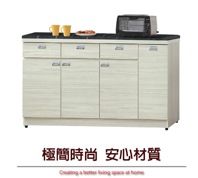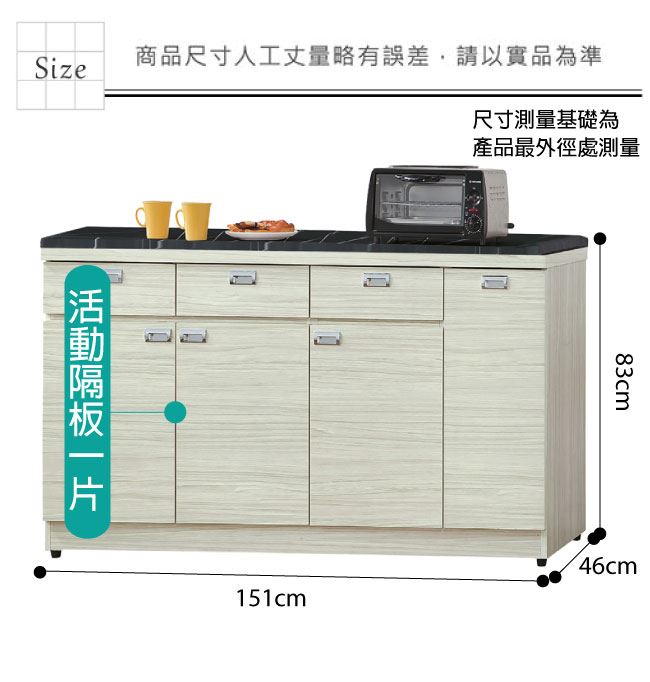 材質 | ◆產品名稱: 【綠家居】高爾森 雪松5尺雲紋石面餐櫃 尺寸:(寬)151(深)46x(高)83/公分 ◆材質: 材質:防蛀木心板+防潮耐磨腳座+五金滑軌結構+12mm雲紋石面板+防夾手緩衝門片五金 噴漆:防潮耐磨噴漆處理