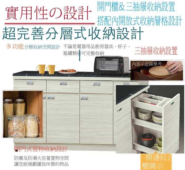 - 開門櫃+二抽屜+側邊拉合收納櫃