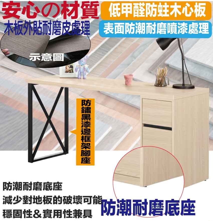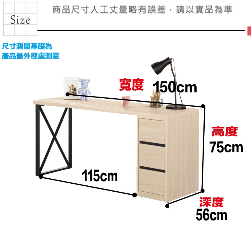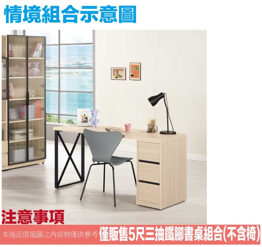 - ◆產品名稱:【綠家居】 朵利5尺三抽鐵腳書桌(二色可選)