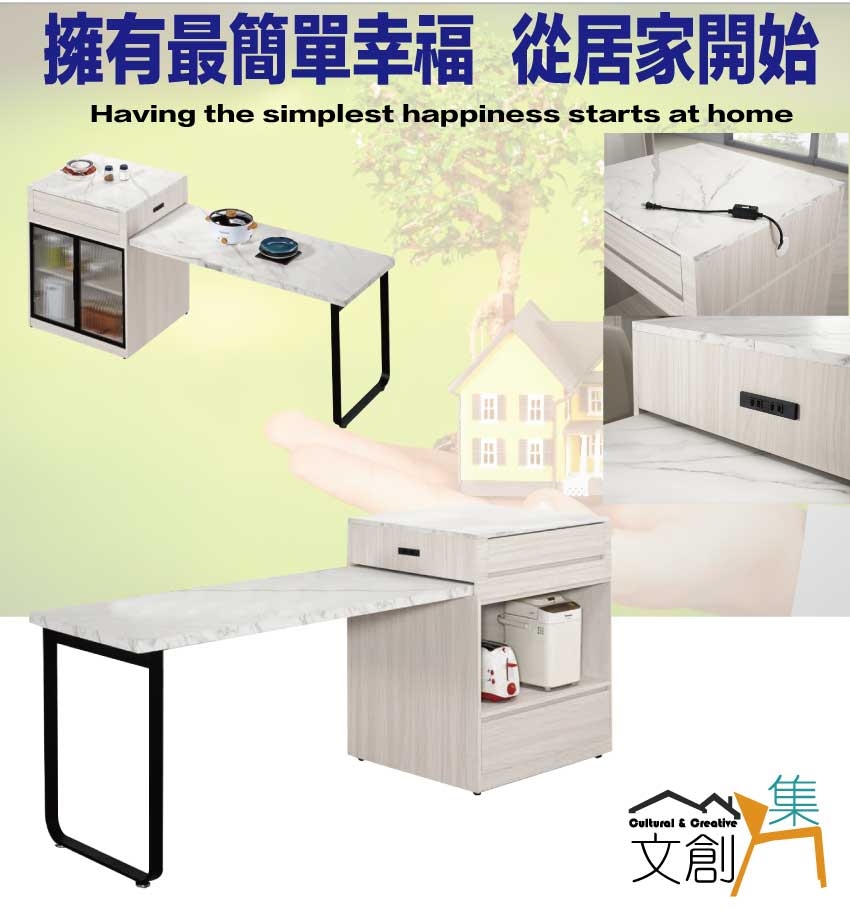 - ◆產品名稱:【綠家居】寶亞雙色5.1尺多功能中島桌櫃組合(桌面板可伸縮使用)